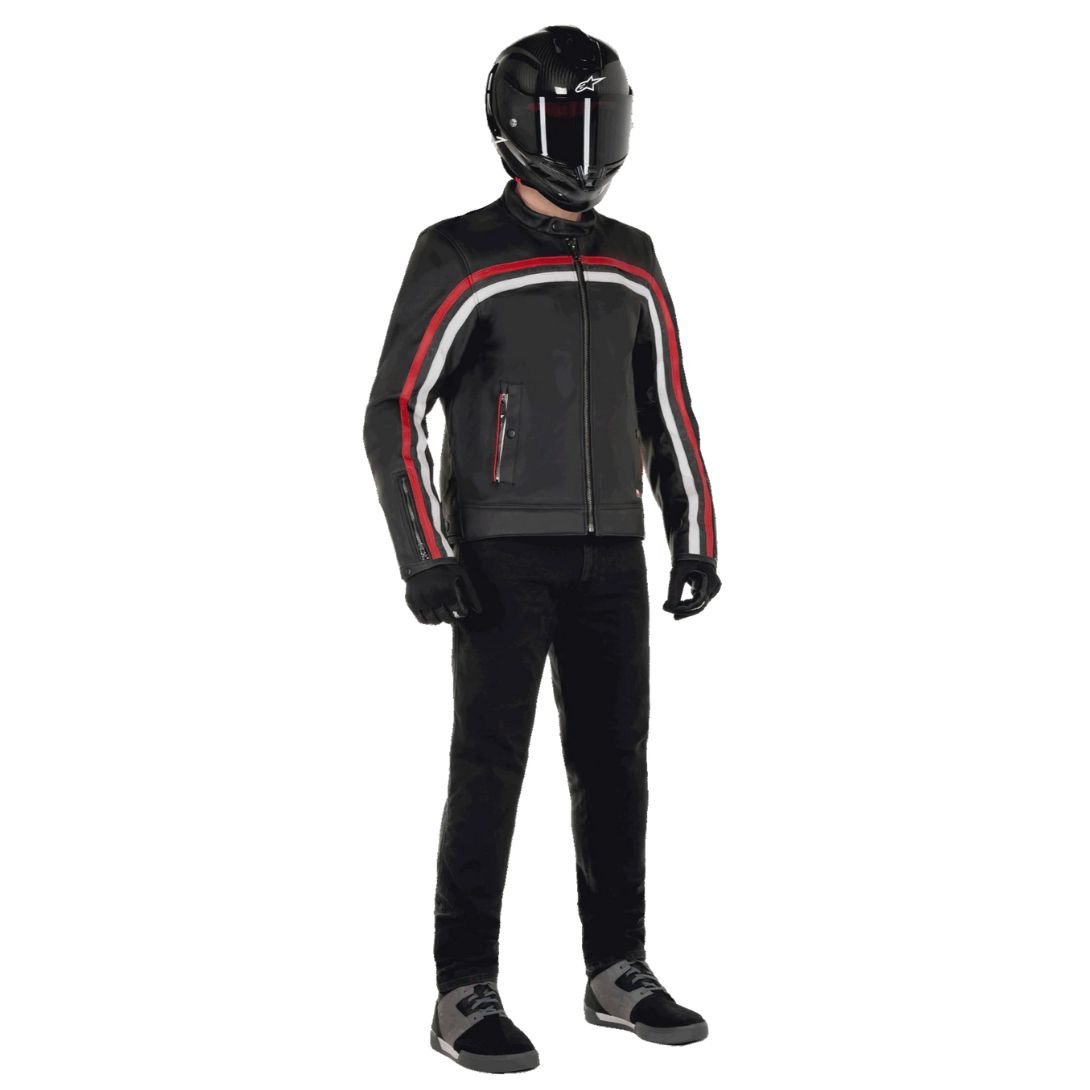 The Alpinestars Dyno Leather Jacket is a premium motorcycle jacket designed for riders who demand style, comfort, and safety. Constructed from high-quality, full-grain leather, this jacket offers a classic aesthetic while ensuring durability and protection against abrasion. The soft leather provides a comfortable fit right from the start, allowing for freedom of movement while riding.