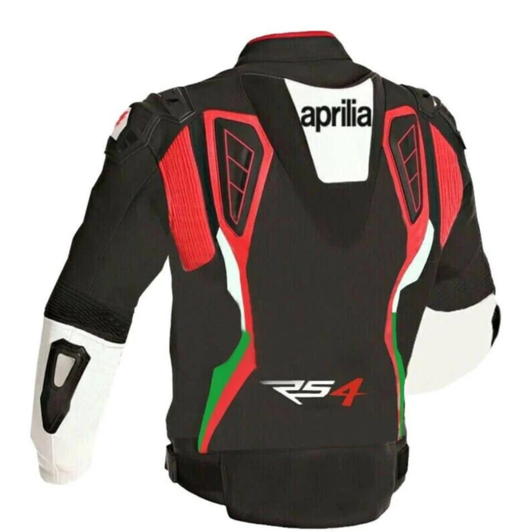 APRILIA BLACK WHITE MOTORCYCLE LEATHER JACKET