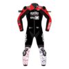 At first glance, the suit’s design commands attention with its aerodynamic contours, meticulously engineered to reduce drag and enhance agility. Strategic perforations adorn the chest, arms, and legs, facilitating superior airflow to keep the rider cool and focused during intense races. The Aprilia emblem, proudly displayed across the chest and back, signifies a commitment to excellence and a legacy of racing prowess.