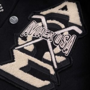 - Embroidered chenille patch at chest and Avirex “A” crest patch on sleeve