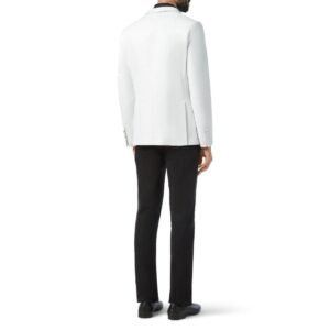 Infused with a Middle Eastern flair, this soft billionaire leather blazer paisley nappa two-button jacket showcases intricate boteh embroidery on the front and cuffs, exuding cultural elegance. It encompasses all the traditional elements of such a garment, including two flapped pockets, a breast pocket, and a lined button fastening. The cuffs are adorned with the same buttons for a harmonious look. Completing its classic silhouette are two slits on the back and inner lining for added comfort.