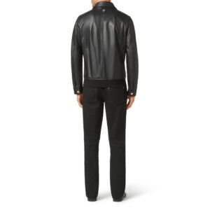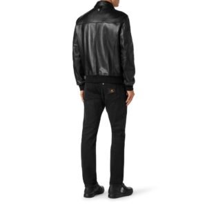 Elegance emanates from meticulous attention to detail, wouldn’t you agree? Allow us to introduce this luxurious soft billionaire sleeveless leather vest. Crafted from plongé Nappa, it features an embroidered Crest on velvet, meticulously sewn at the left chest. With a double slider zip fastening and two slit pockets discreetly secured with press studs, it boasts rib knit hems with contrasting colors on the inside for added flair. Its lightly padded satin lining showcases a sophisticated jacquard woven pattern.