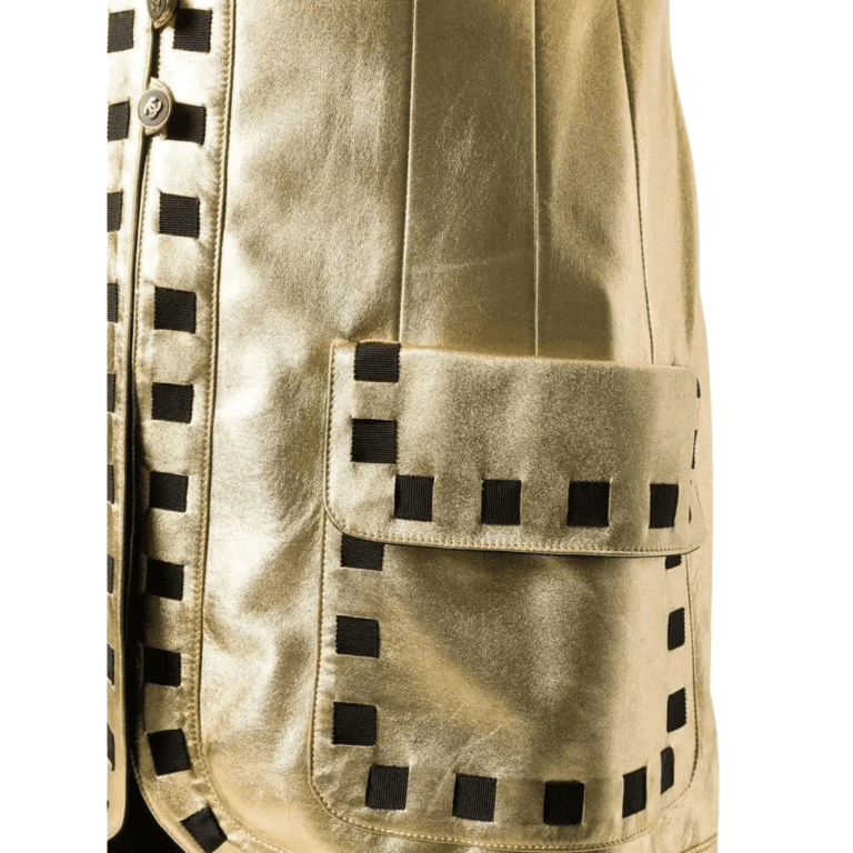 Elevate your wardrobe with a touch of glamour that transcends seasons. Our Gold Leather Coat is not just a fashion statement; it’s a versatile piece that seamlessly transitions from day to night, offering endless styling possibilities. Whether paired with jeans for a casual-chic daytime look or draped over an elegant gown for a formal affair, this coat effortlessly exudes sophistication and allure.