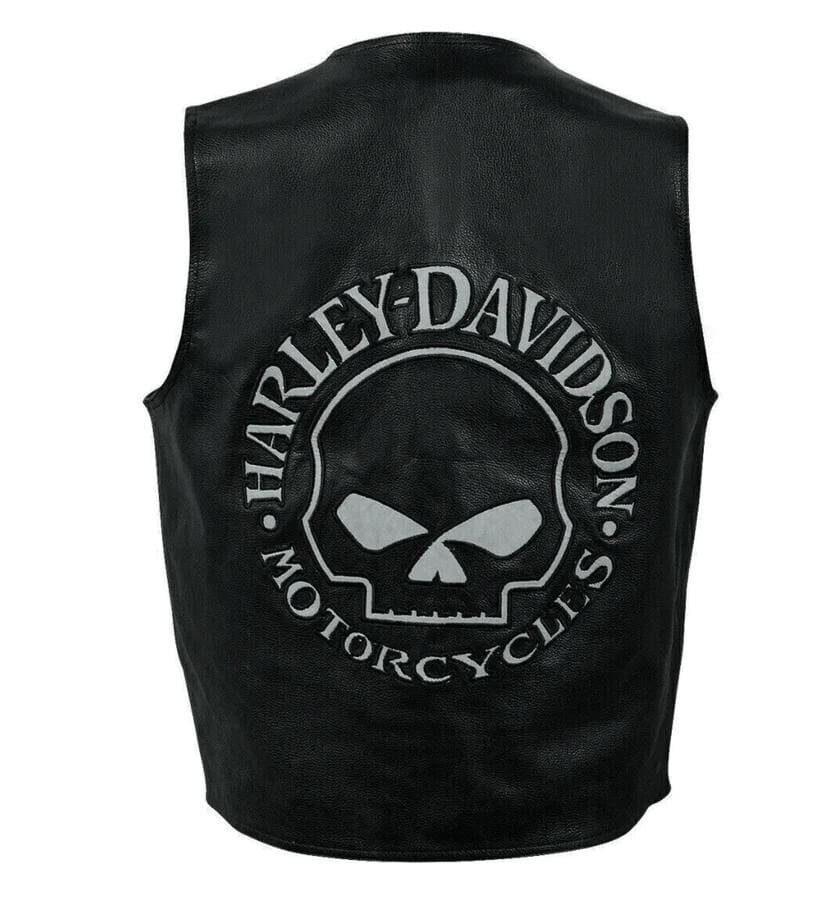 This motorcycle leather vest is the perfect way to show off your love for the brand while also staying safe on the open road. The reflective skull design adds a touch of personality, while the Harley-Davidson logo is a clear indication of your dedication to the brand.