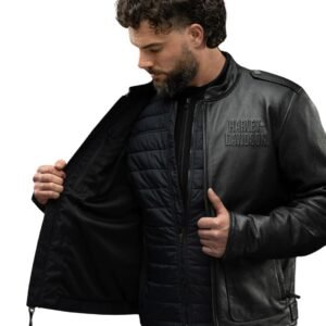 Embellished with subtle Harley-Davidson branding elements, such as the iconic Bar & Shield logo discreetly placed on the chest or zipper pulls, the jacket exudes a timeless and unmistakable identity. Its classic yet contemporary design makes it versatile enough to be worn both on and off the bike, seamlessly transitioning from the open road to casual outings. HARLEY MEN’S HD FLEX LATRING SYSTEM CAPTAINS LEATHER JACKET OUTER LAYER