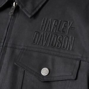 Constructed from durable materials, the outer shell features a robust blend of polyester and cotton canvas, providing excellent abrasion resistance while maintaining a lightweight feel. The design pays homage to the timeless trucker jacket silhouette, featuring a structured collar, button-front closure, and multiple pockets for a functional yet stylish appearance. HARLEY MEN’S HD FLEX LAYRING SYSTEM TRUCKER RIDING JACKET