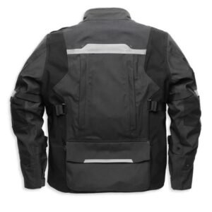 Aesthetically, the jacket embodies Harley-Davidson’s signature rugged yet refined style. It sports bold Harley branding elements, reflective piping for increased visibility in low-light conditions, and a distinctive Harley-Davidson badge on the front chest. The black colorway with contrasting accents adds to its aggressive and contemporary look, appealing to riders who value both functionality and fashion on the road.