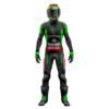 - Jonathan Rea Design: Features a distinctive design inspired by Jonathan Rea’s racing gear. The suit showcases the iconic Kawasaki team colors and branding, including logos and graphics associated with Rea’s H2R and ZX10R machines.