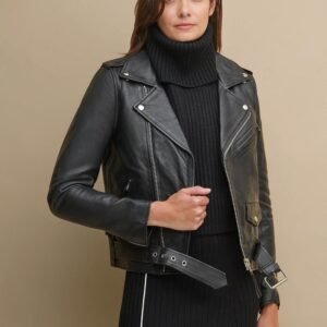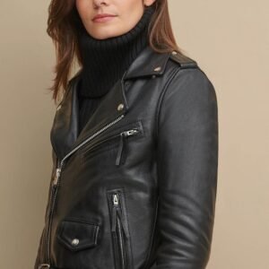 Belted leather waist.