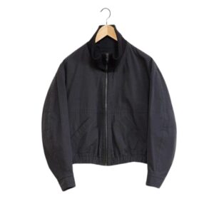 The blouson is characterized by its clean, minimalistic lines and a streamlined silhouette. It showcases a classic bomber-style design with a modern twist, incorporating a ribbed knit collar, cuffs, and hem. These ribbed details not only contribute to the jacket’s sporty aesthetic but also provide a snug fit, ensuring that the jacket retains its shape and adds an element of coziness.