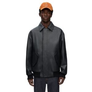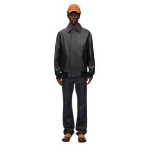 In essence, Loewe’s bomber jacket in nappa calfskin leather epitomizes the brand’s commitment to high-quality materials and sophisticated design. It is more than just a piece of outerwear; it is a statement of elegance and modernity, reflecting Loewe’s dedication to creating timeless fashion pieces that remain relevant across seasons and trends.