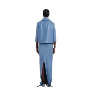 In summary, the Marni Blue Shiny Leather Jacket is a statement piece that blends luxurious craftsmanship with contemporary design, making it a must-have for those looking to make a bold fashion statement while enjoying high-quality, lasting style.