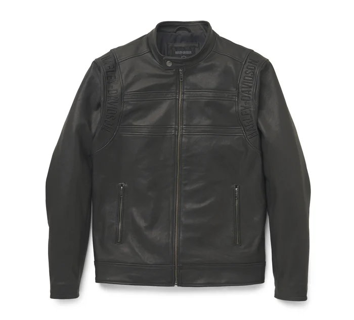 Urban chic meets H-D® enthusiast in our Men’s Oakland Leather Jacket. It’s crafted for comfort and durability from a robust cut of buttery-soft lambskin with a pliable and fast-drying polyester taffeta lining. Features like a snap collar tab play well with the stylish piecing and stitching detail. Our branding is etched and embroidered just enough to make your love for the open road known.