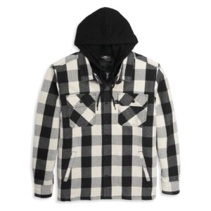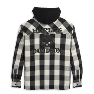 With direct embroidery graphics and a sleek, minimalist design, the Men’s Willie G Skull Hoodie Buffalo Check Shirt Jacket – Tall offers understated style that complements its functional features. The hidden snap-down collar and subtle branding add a sophisticated touch, making this jacket suitable for both on and off the bike.