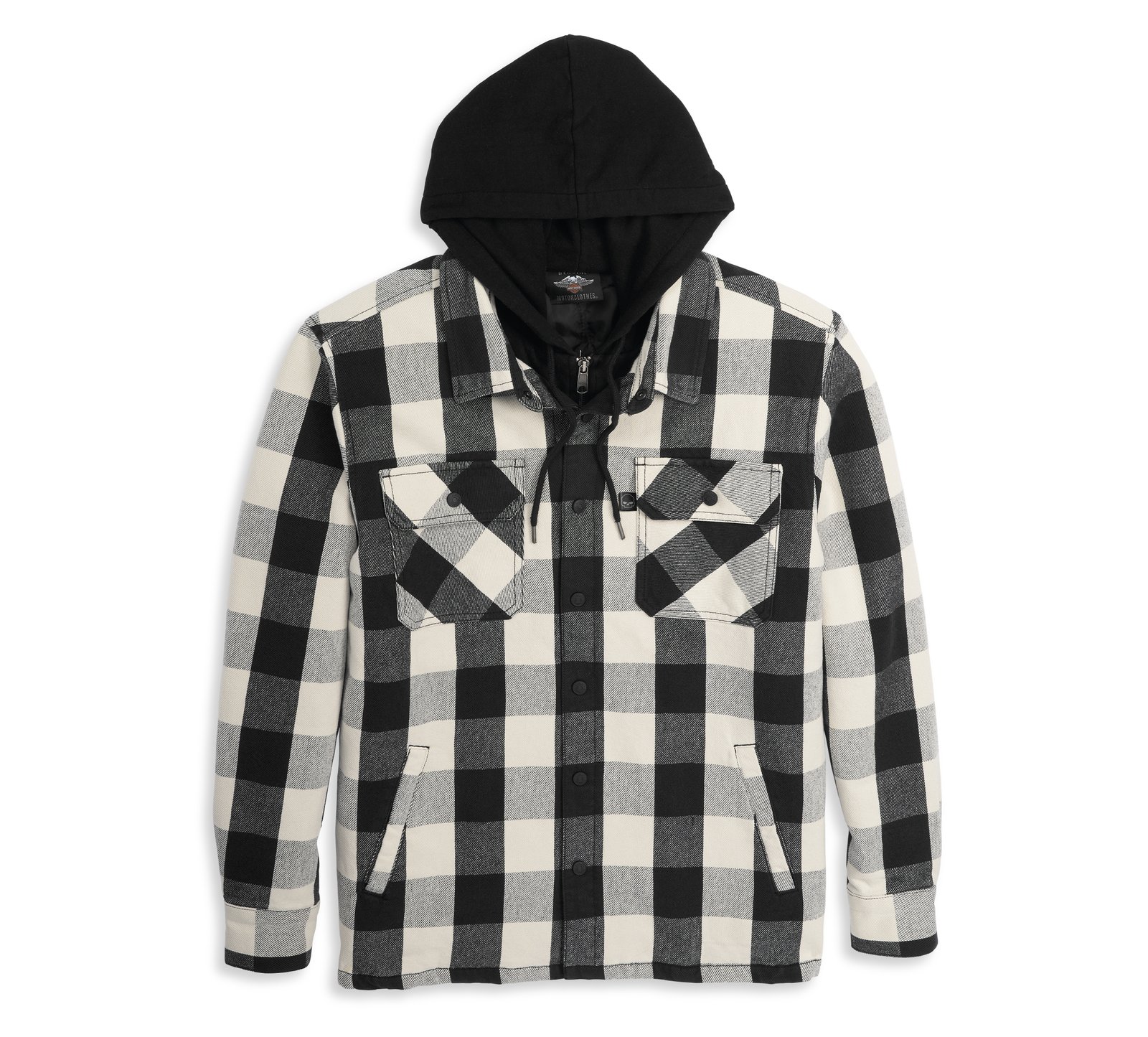 Be part lumberjack, part hell-raiser in our Men’s Willie G Skull Hoodie Buffalo Check Shirt Jacket – Tall. Cut from rugged twill in iconic buffalo plaid and lined with a beefy quilted lining to take on lower temps. For a layered look, add your favorite H-D® hoodie underneath. It’s finished with a satin back appliqué inspired by Willie G.