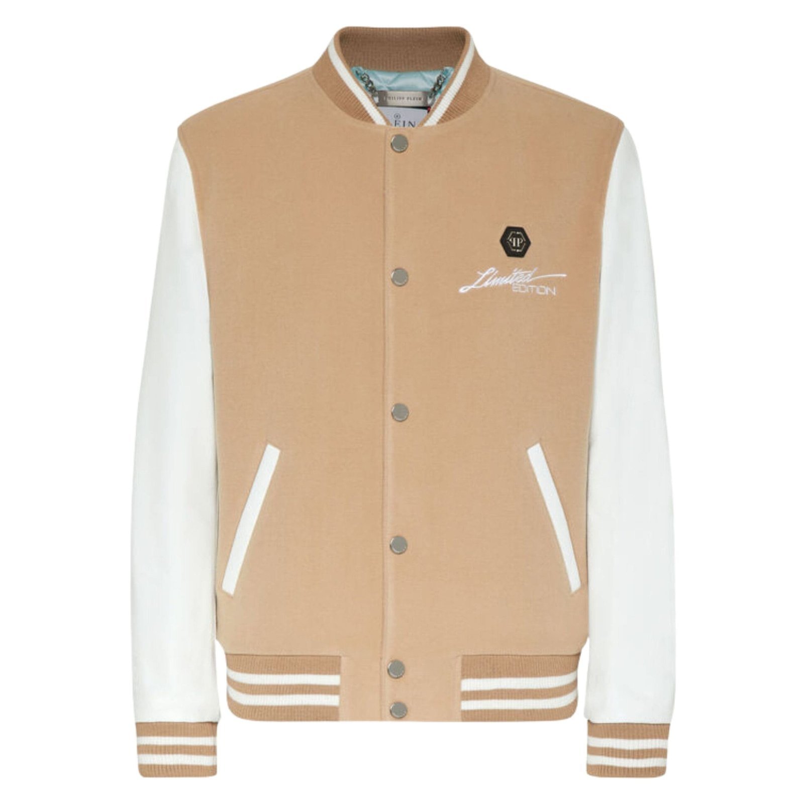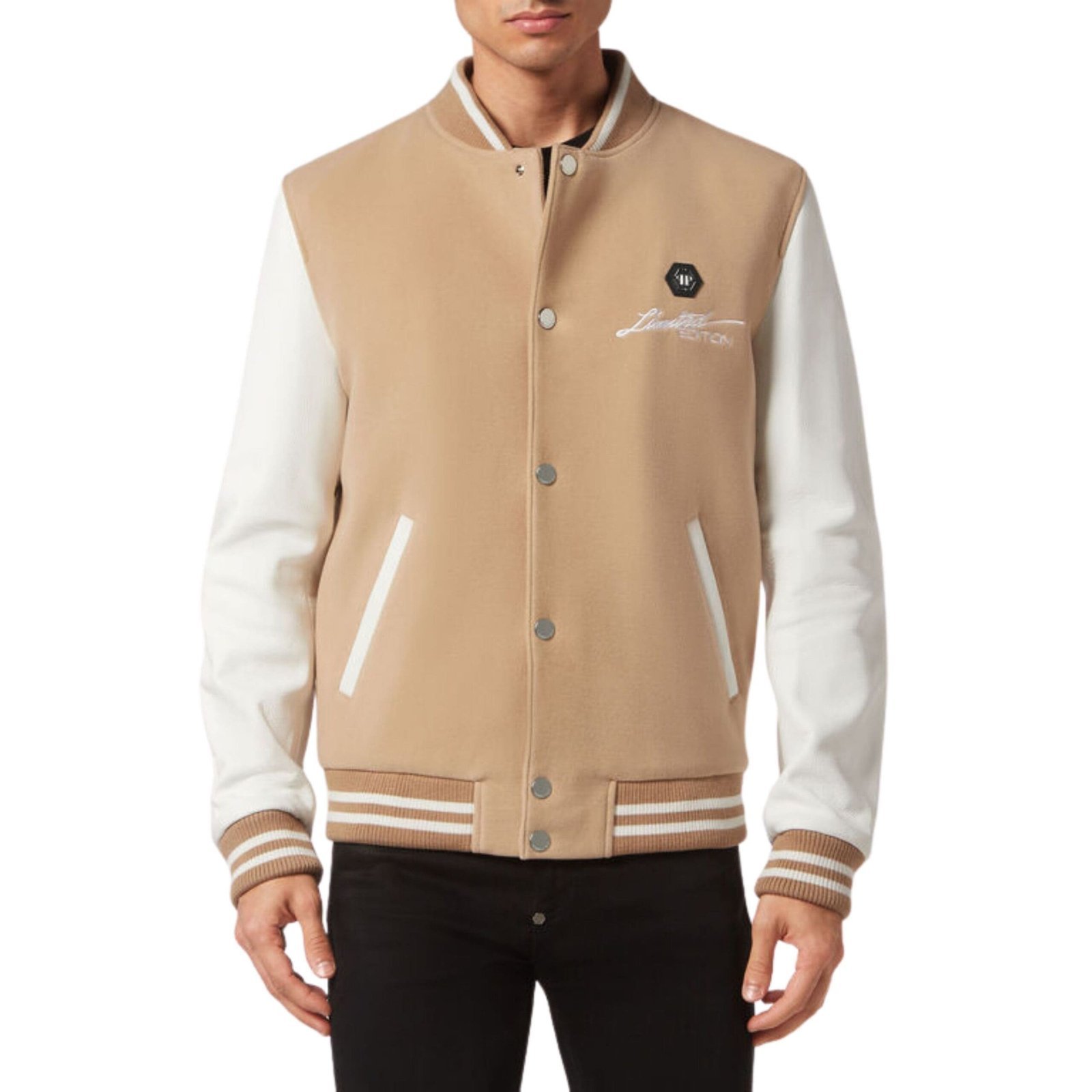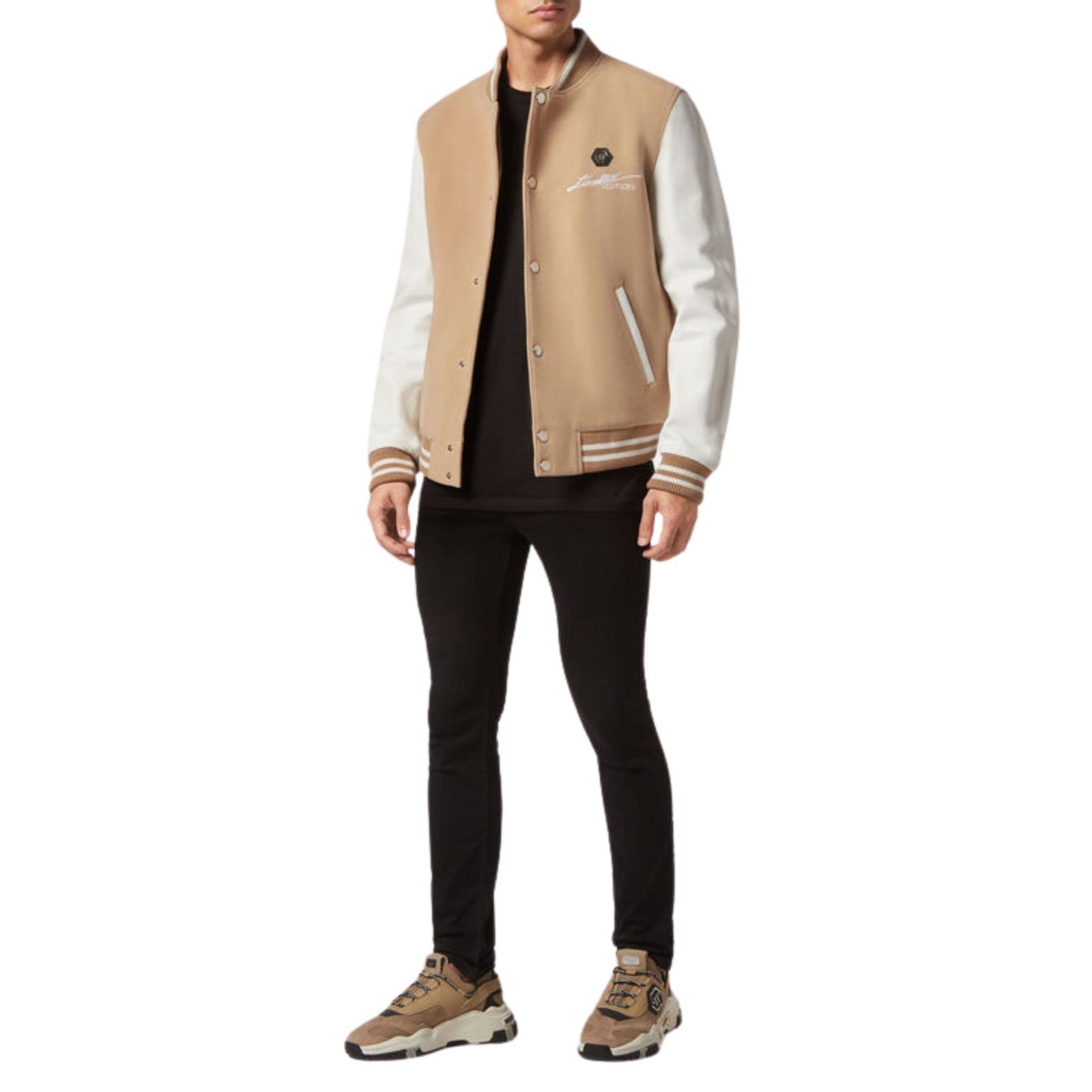 Philipp Plein Wool And Leather Bomber Skull & Bones