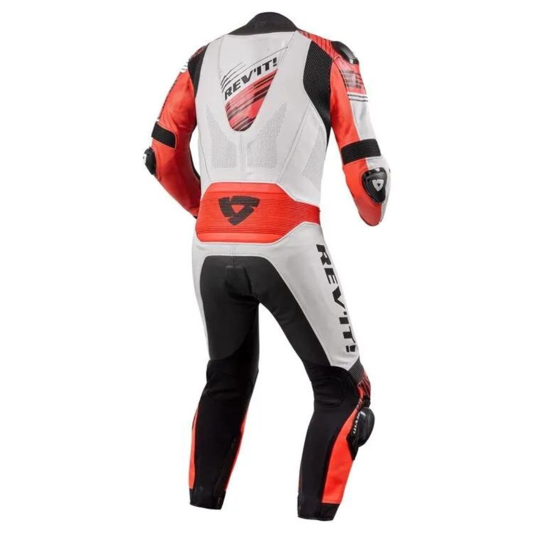 The Revit Motorcycle Leather Racing Suit is a pinnacle of high-performance gear designed for the serious rider seeking both protection and style on the track. Crafted from premium full-grain cowhide leather, this suit offers superior durability and abrasion resistance. The leather is not only robust but also flexible, allowing for a comfortable fit that moves with the rider. The suit features advanced body armor strategically placed at the shoulders, elbows, and knees, along with a back protector, ensuring maximum impact protection in the event of a fall.