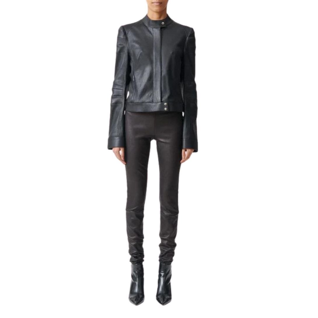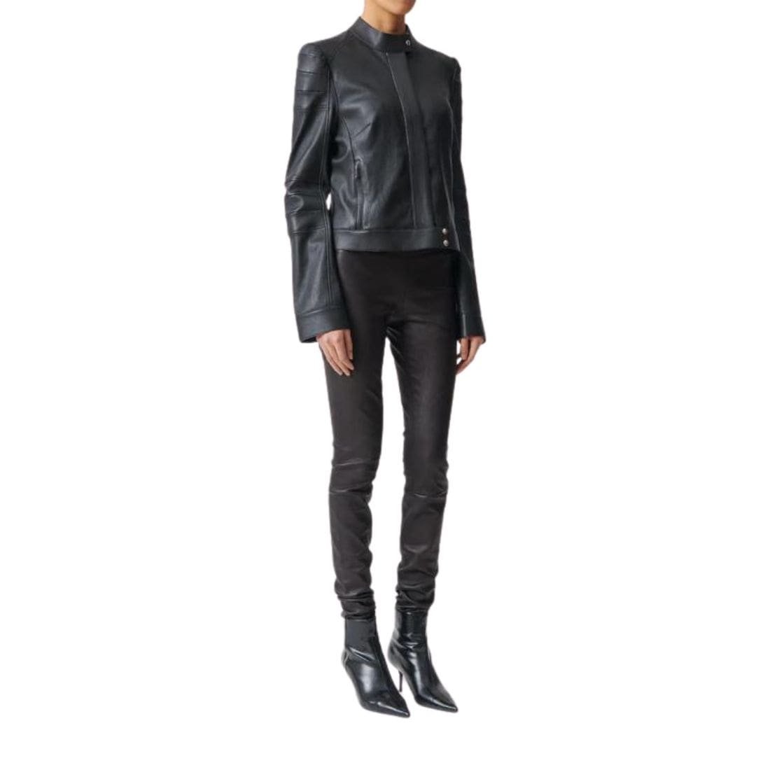 Indulge in ultimate comfort and style with the Stouls Carolyn Perfect Stretch Leather Leggings. Crafted from premium stretch leather, these leggings offer a luxurious feel and exceptional flexibility. Designed to contour and flatter the body, they provide a sleek, second-skin fit that enhances every silhouette. Featuring a high-rise waist and impeccable craftsmanship, the Carolyn leggings blend sophistication with modernity. Whether dressed up with a blouse and heels or down with a cozy sweater and boots, they epitomize effortless elegance for any occasion.