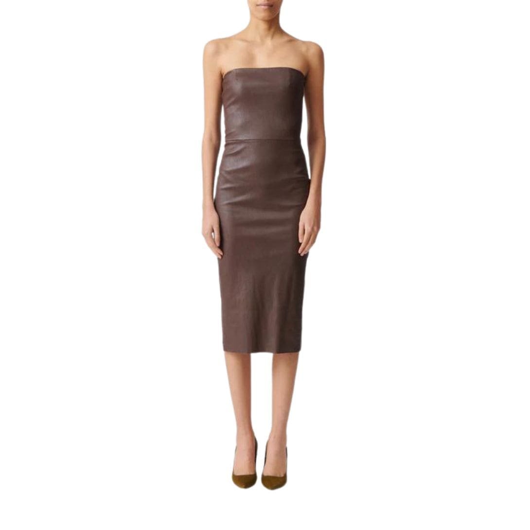 The Stouls Mona Strapless Leather Dress exudes modern sophistication and timeless allure. Crafted from luxurious stretch lambskin, this dress features a sleek and minimalist strapless design that highlights the shoulders and neckline beautifully. It boasts a form-fitting silhouette that accentuates curves while offering comfort and ease of movement. Perfect for special occasions or evening events, the dress combines elegance with contemporary style. Meticulously crafted in Portugal, it showcases Stouls’ dedication to quality and craftsmanship, making it a standout piece in any wardrobe.