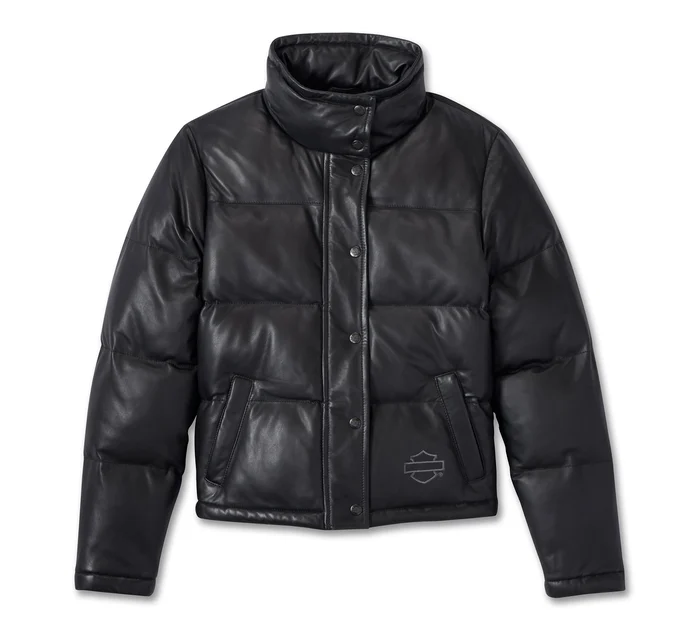 Sheep leather, stay-warm style, and iconic motorcycling all converge seamlessly on the Limited Edition Blacked Out Leather Puffer. This women’s winter outerwear holds true to puffer styling with its boxier silhouette, plus it features a snap-closed funnel collar and a snap + zipper placket to help block out wind and cold. Minimally branded with a hit of embroidery on front for a lowkey, leather-loving look that’s authentically Harley-Davidson. Order this distinctive winter jacket ASAP since supplies are limited.