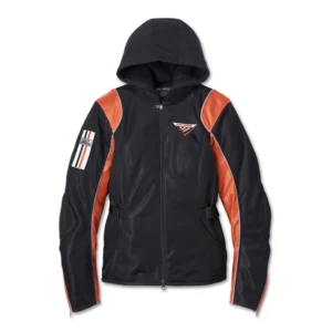 Wear the jacket alone, with the hoodie, or the hoodie by itself—it’s a must-have for road trips and rallies either way. The jacket’s designed with a rider-friendly mandarin collar, reinforced elbow patches, and a mix of embroidery that honors our racing heritage. School yourself on all of its features in the specs below…