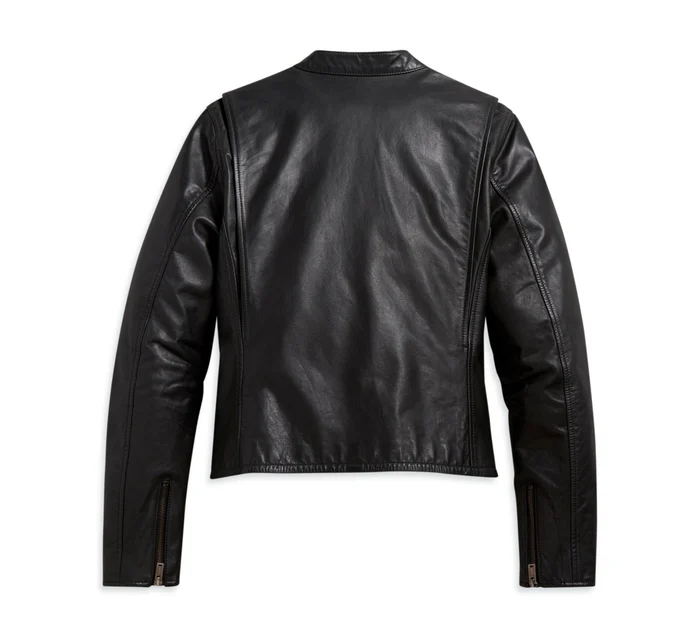 This leather jacket is equipped with multiple pockets, making it as practical as it is stylish. The zippered chest pocket is perfect for storing small essentials like a phone or keys, while the handwarmer pockets provide a cozy space for your hands during chilly weather. The sleek, zippered design of the pockets adds to the jacket’s polished aesthetic.